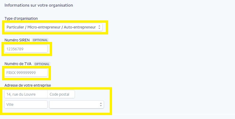 F) Entrez votre numéro de SIREN et tva (facultatif)